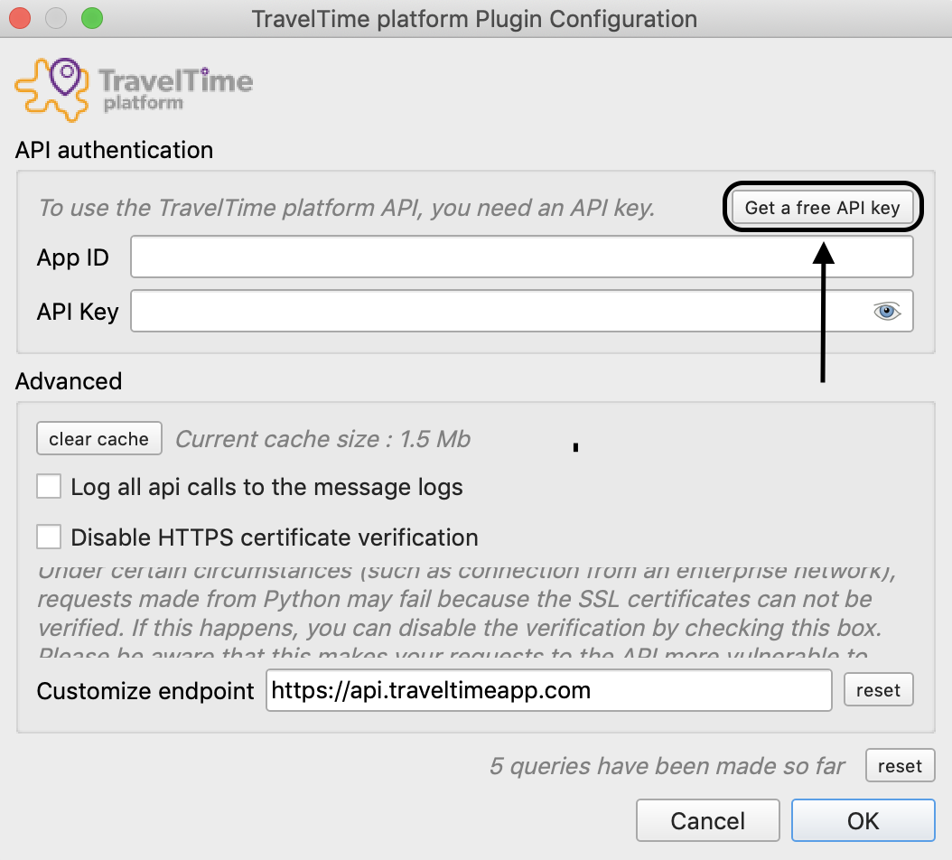 Note: To use the TravelTime plugin in QGIS, you’ll first need an API key. You can get a free API key here. You can also download the latest version of the plugin here.