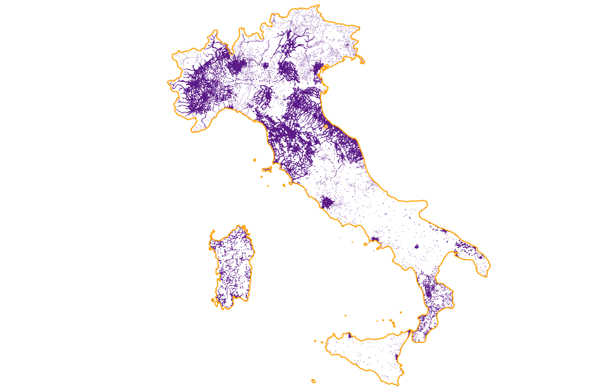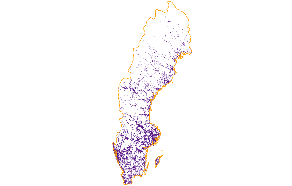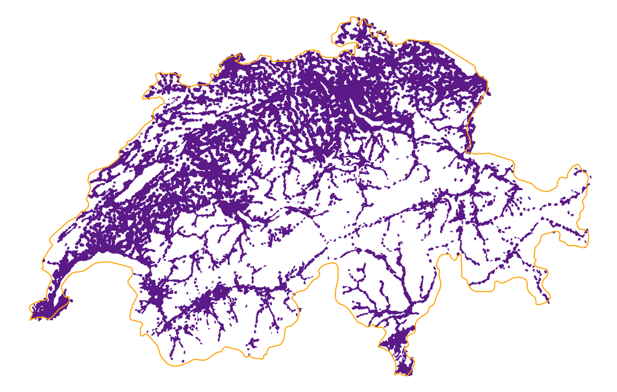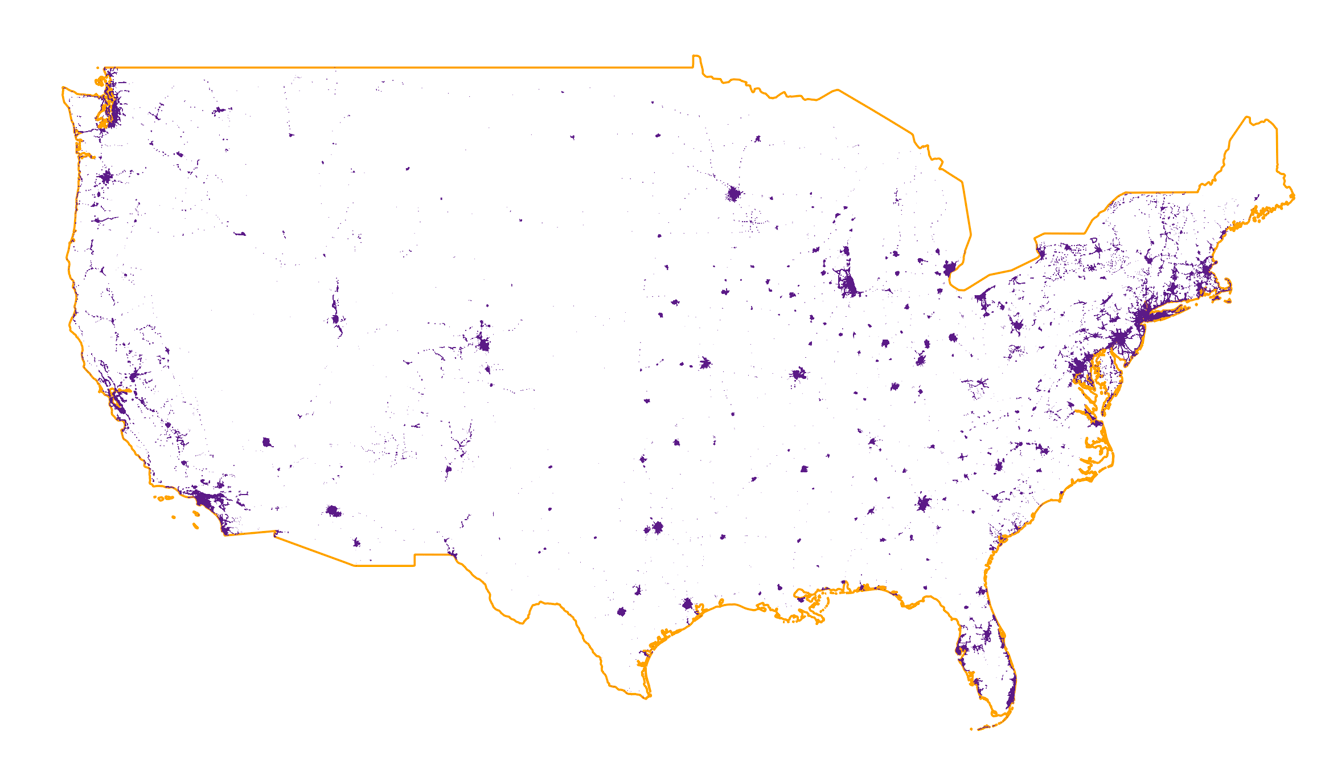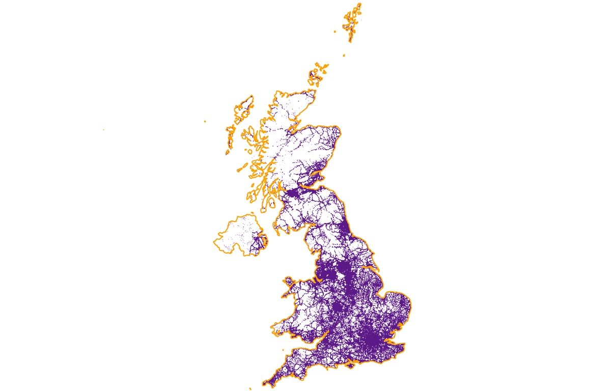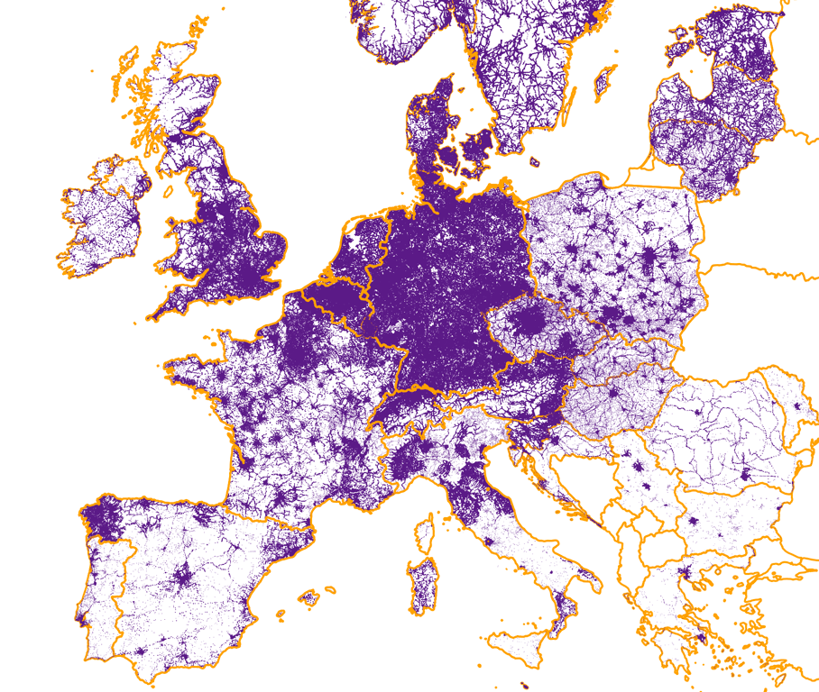 We’ve created a way to identify how public transport friendly a country is. The purple highlights all the areas of a country that can reach some sort of public transport service.